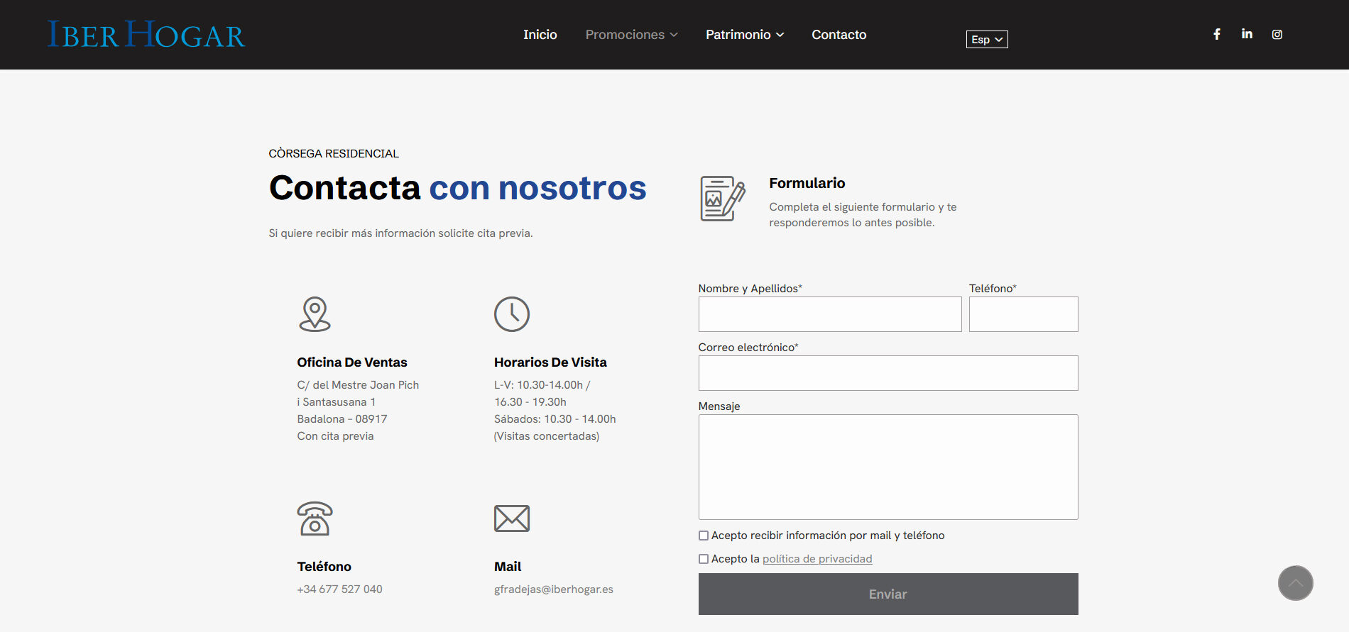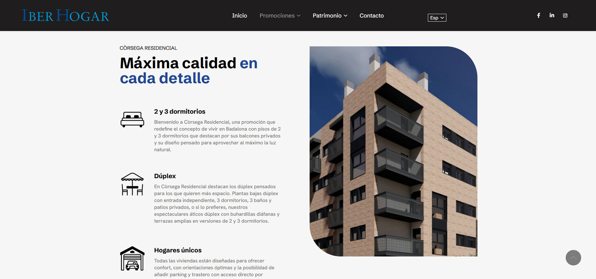 Web corporativa y de servicios para empresa del sector Inmobiliario.